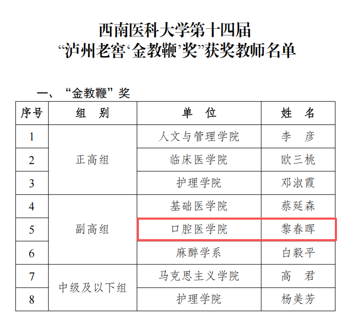 喜报:MG老虎机游戏_mg老虎机-彩客网彩票推荐教师在西南医科大学第十四届“泸州老窖‘金教鞭’和‘金教鞭之星’”大赛中喜获双丰收